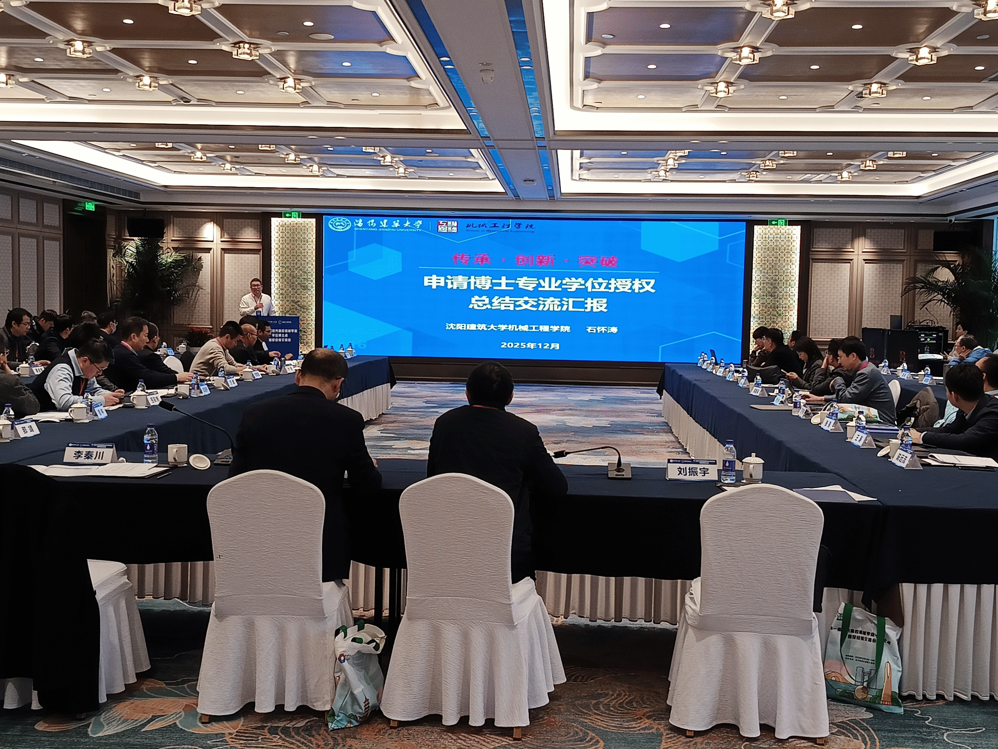 经验交流会上,石怀涛教授以“申请博士专业学位授权总结交流汇报”为题,围绕学校与学院简介、学科方向与人才培养、科研情况以及专业领域发展规划等内容,系统介绍了学科基础条件与整体实力,重点阐述了四大特色研究方向及其产教融合培养模式,全面阐述了近五年在科研项目、成果转化与服务地方方面取得的显著成效,并前瞻规划了瞄准智能制造与智能建造、着力突破平台、成果与人才瓶颈的未来发展路径。本次交流会旨在汇聚全国地方高校力量,围绕“地方高校专业博士点建设”核心议题,通过来自全国多所高校的专家学者20余场专题报告,深入交流了在学科特色凝练、产教融合深化、卓越工程人才培养模式创新以及服务国家重大战略与区域经济发展等方面的实践经验与前沿探索。