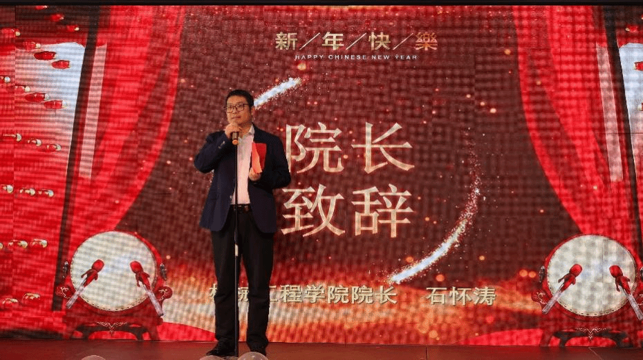 机械工程学院院长石怀涛致新年贺词。他全面回顾了学院2025年在党建引领、学科建设、教学改革、科研创新、人才培养等方面取得的成绩;向长期以来关心支持学院发展的各级领导、各界友人以及为学院建设辛勤付出的全体师生表示衷心感谢与崇高敬意。同时,他勉励全体教师在新的一年里,以凝心聚力的协作精神、锐意进取的实干担当,分离推动学院各项事业在高质量发展征程上勇攀新高峰、再谱新华章。