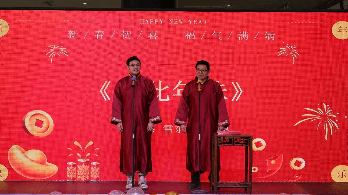 总结表彰大会圆满落幕后,新年联欢会在热烈欢快的氛围中正式拉开帷幕。学院领导及全院教职工纷纷登台,献上精彩的文艺节目。诗歌朗诵铿锵有力,歌曲演唱婉转悠扬、相声表演诙谐幽默、乐器演奏韵味悠长,形式多样、内容丰富的节目充分展现了机械工程学院教师多才多艺、积极向上的精神风貌,赢得了现场观众的阵阵掌声与喝彩。节目间隙,“精准投壶”、“机械术语正话反说”“蒙眼踏步走”等趣味互动游戏接连上演,全体教师踊跃参与、默契配合,在欢声笑语中拉近距离、凝聚情谊,充分展现了学院教师团结和睦的良好氛围。